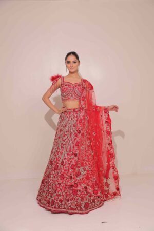 Fierce, feminine, and fashion-forward — our Blush Red Lehenga is designed to make a bold yet romantic statement.