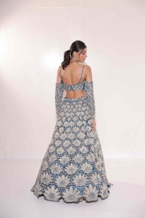 Grace meets grandeur in the Celestial Bloom Blue Lehenga, a masterpiece of modern luxury.