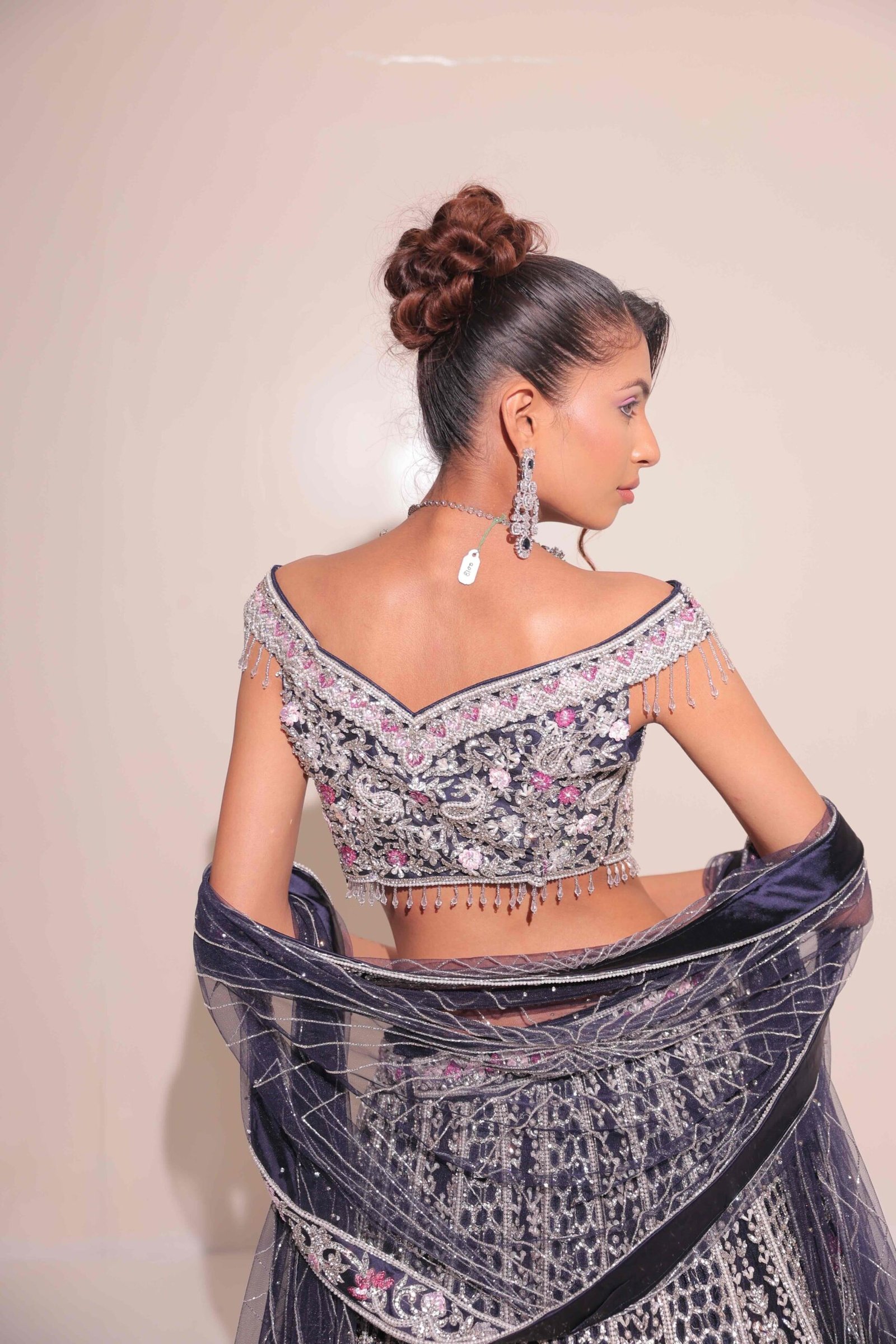 <p>Its celestial shimmer and intricate craftsmanship make it a statement piece for the modern bride who wants to blend tradition with a touch of contemporary allure.</p>