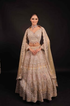 Step into the spotlight with our Gold Lehenga, a radiant masterpiece designed for timeless celebrations.