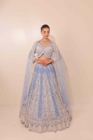 Delicate, dreamy, and effortlessly chic — our Light Blue Lehenga is the epitome of modern elegance.