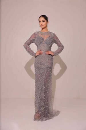 Ethereal and effortlessly elegant, our Grey Tulle Gown is a vision of understated luxury.