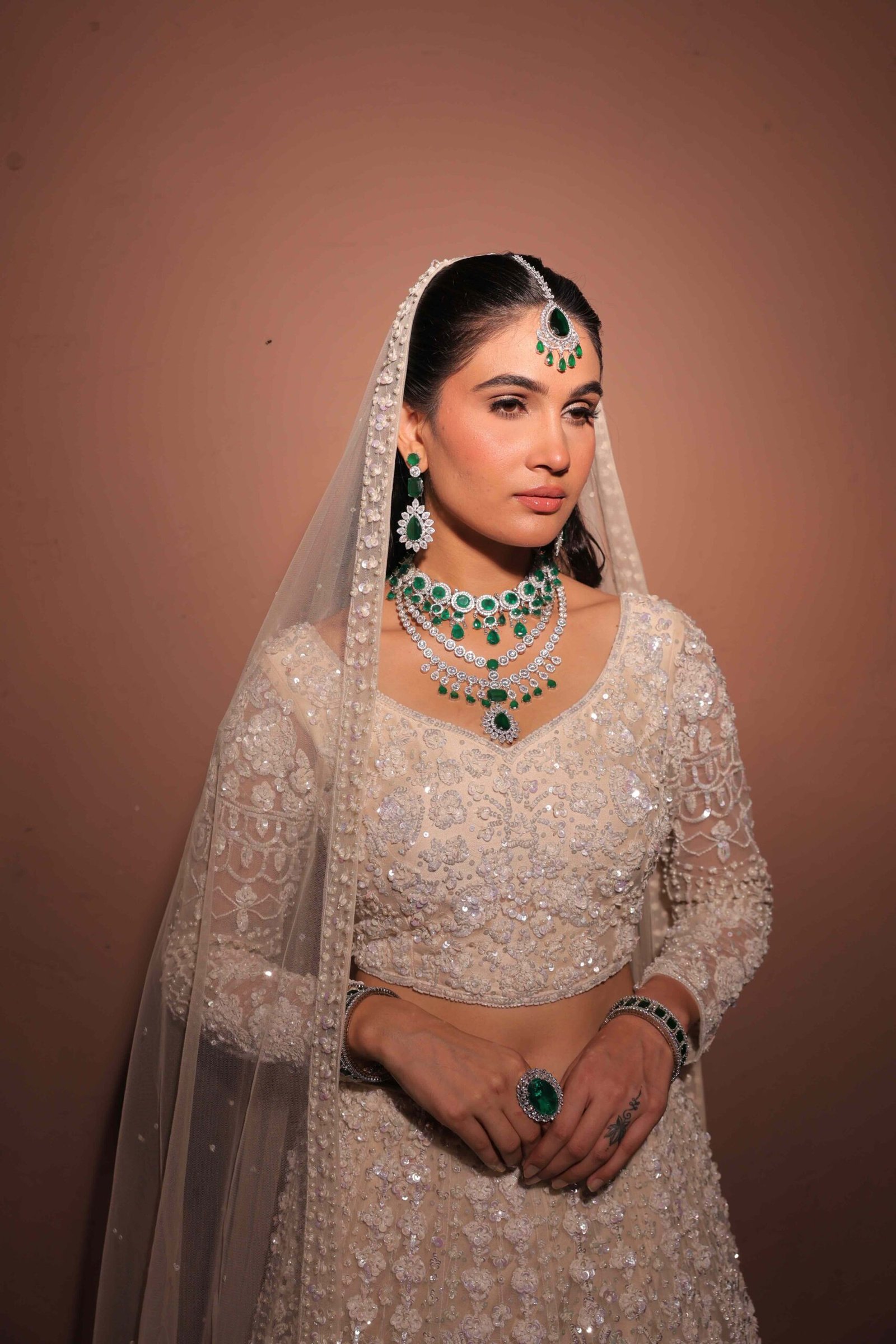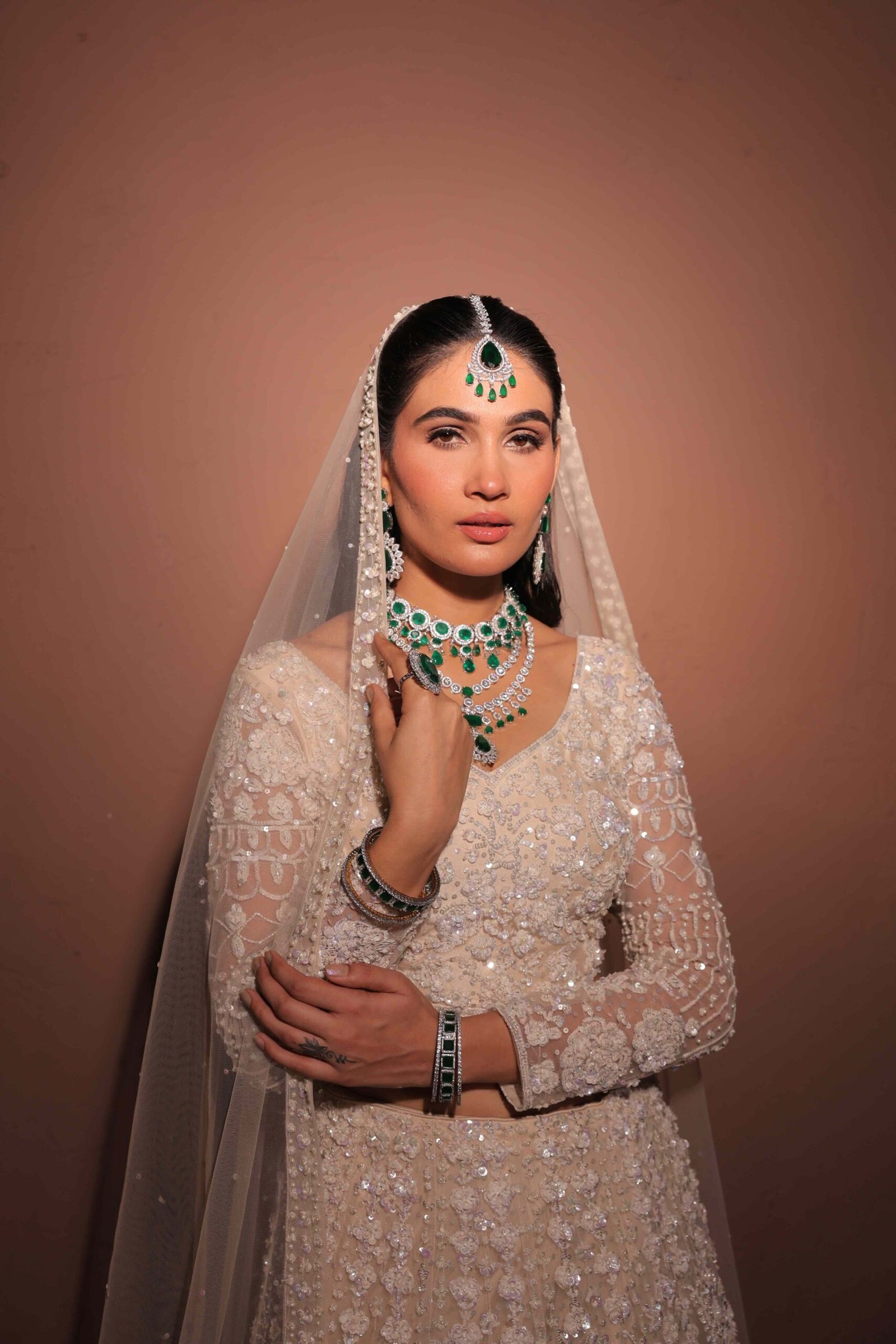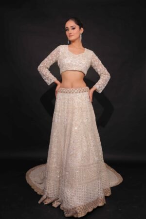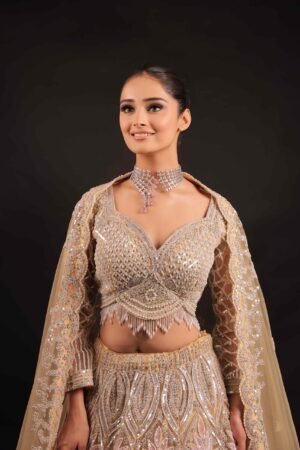 Made from tule fabric,sequence,rhinestones, it highlights a fusion of intricate work and timeless charm.