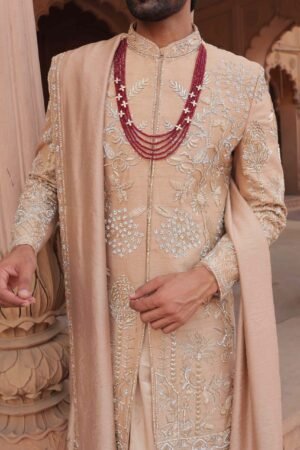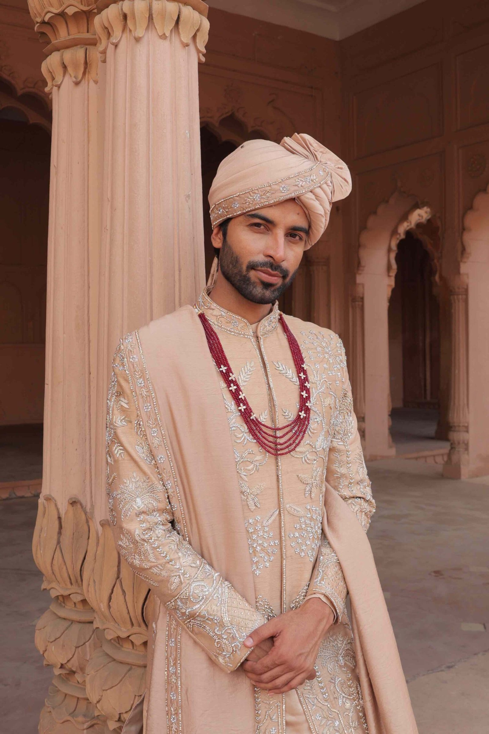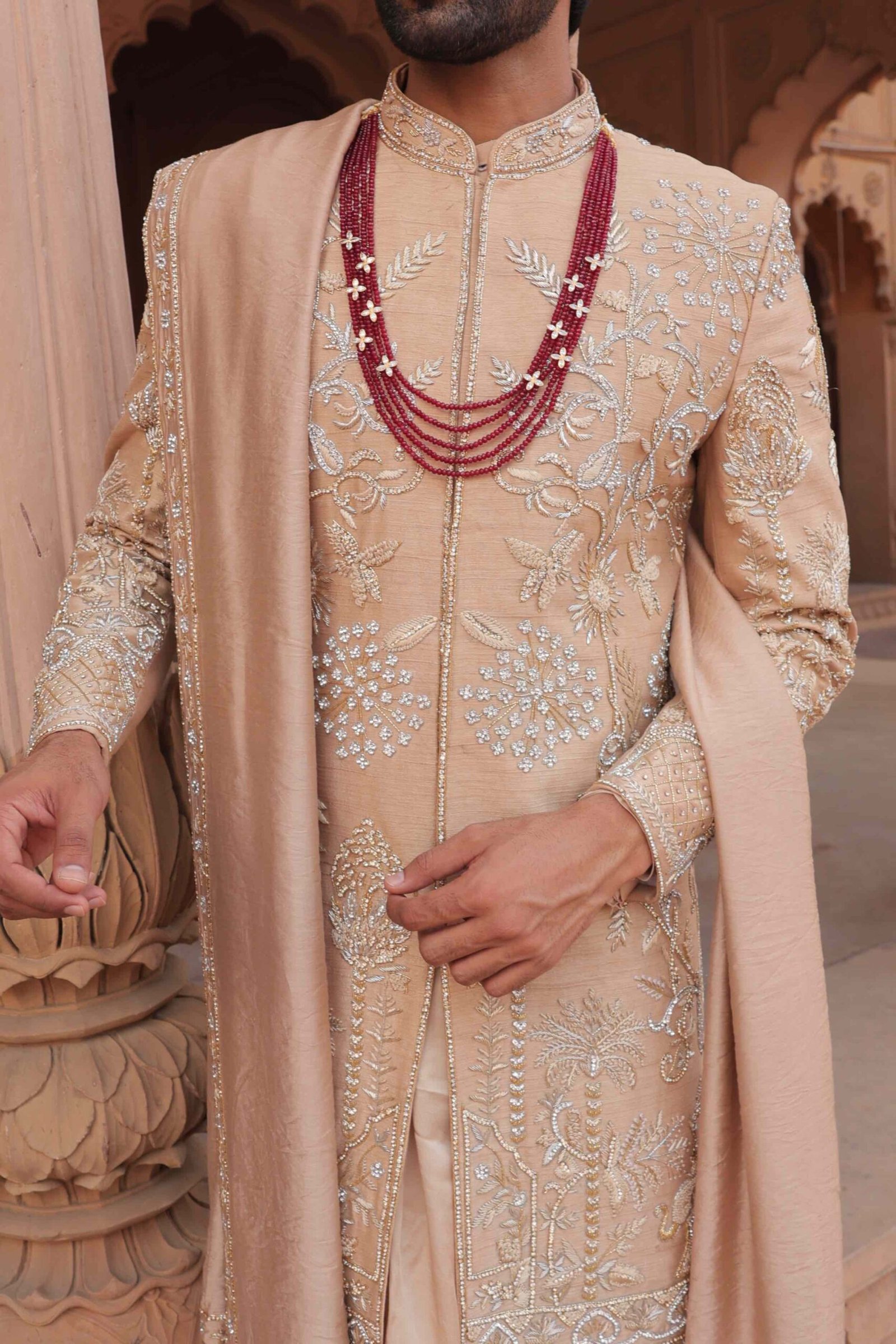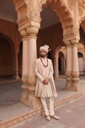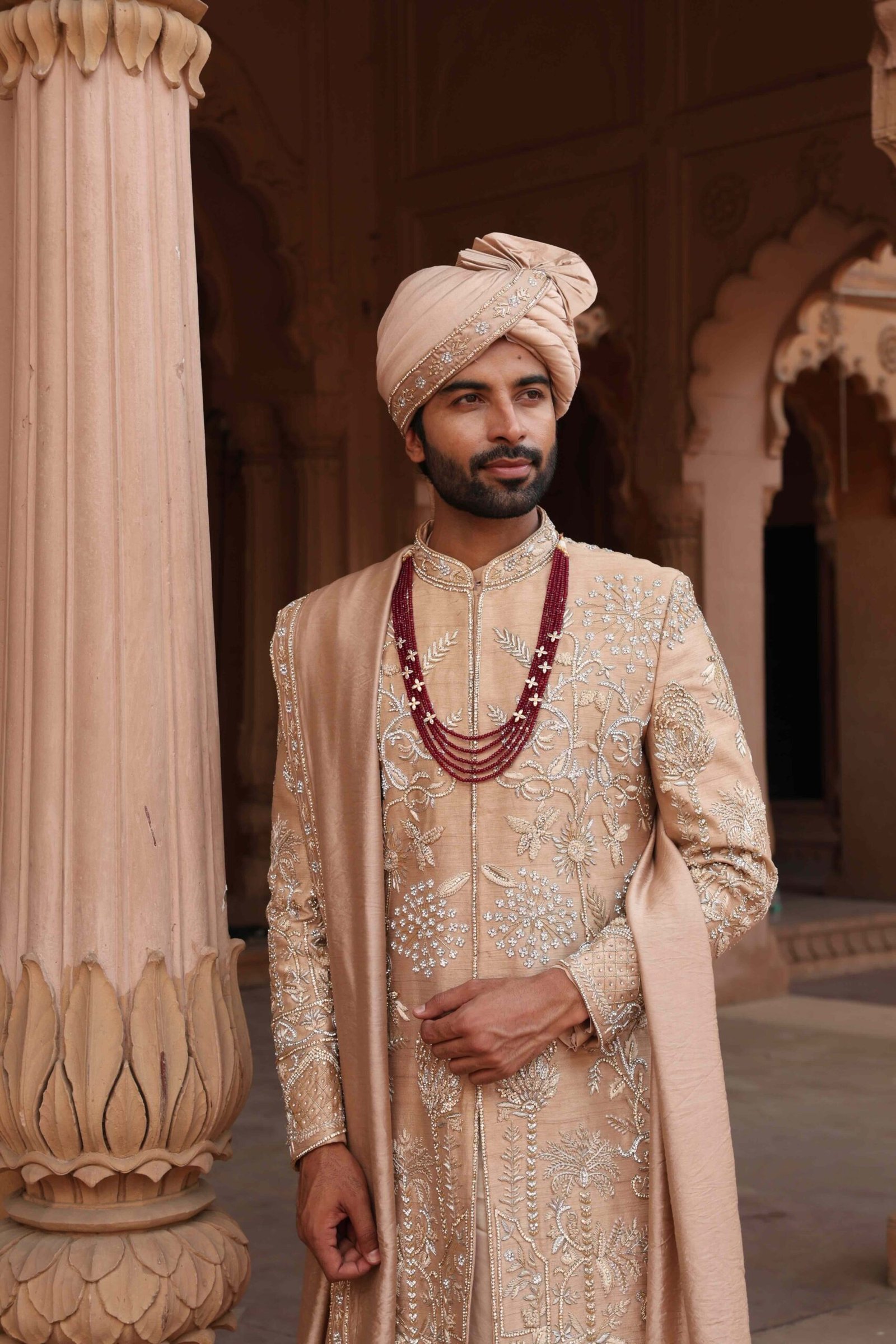 The Champagne Majesty Sherwani captures the essence of refined grandeur.